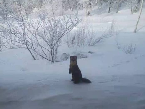 亞雪公路現(xiàn)紫貂覓食 萌態(tài)百出 機(jī)警可愛