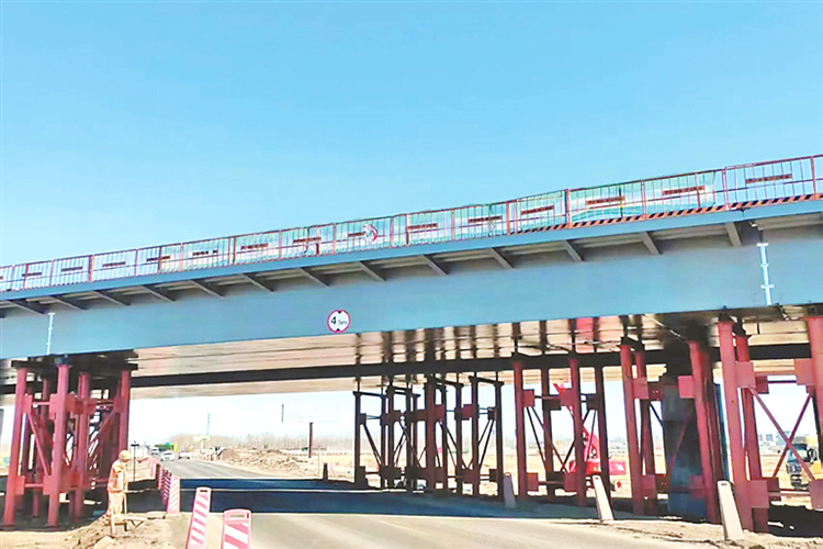 鐵科高速京撫公路跨線橋鋼箱梁架設完成