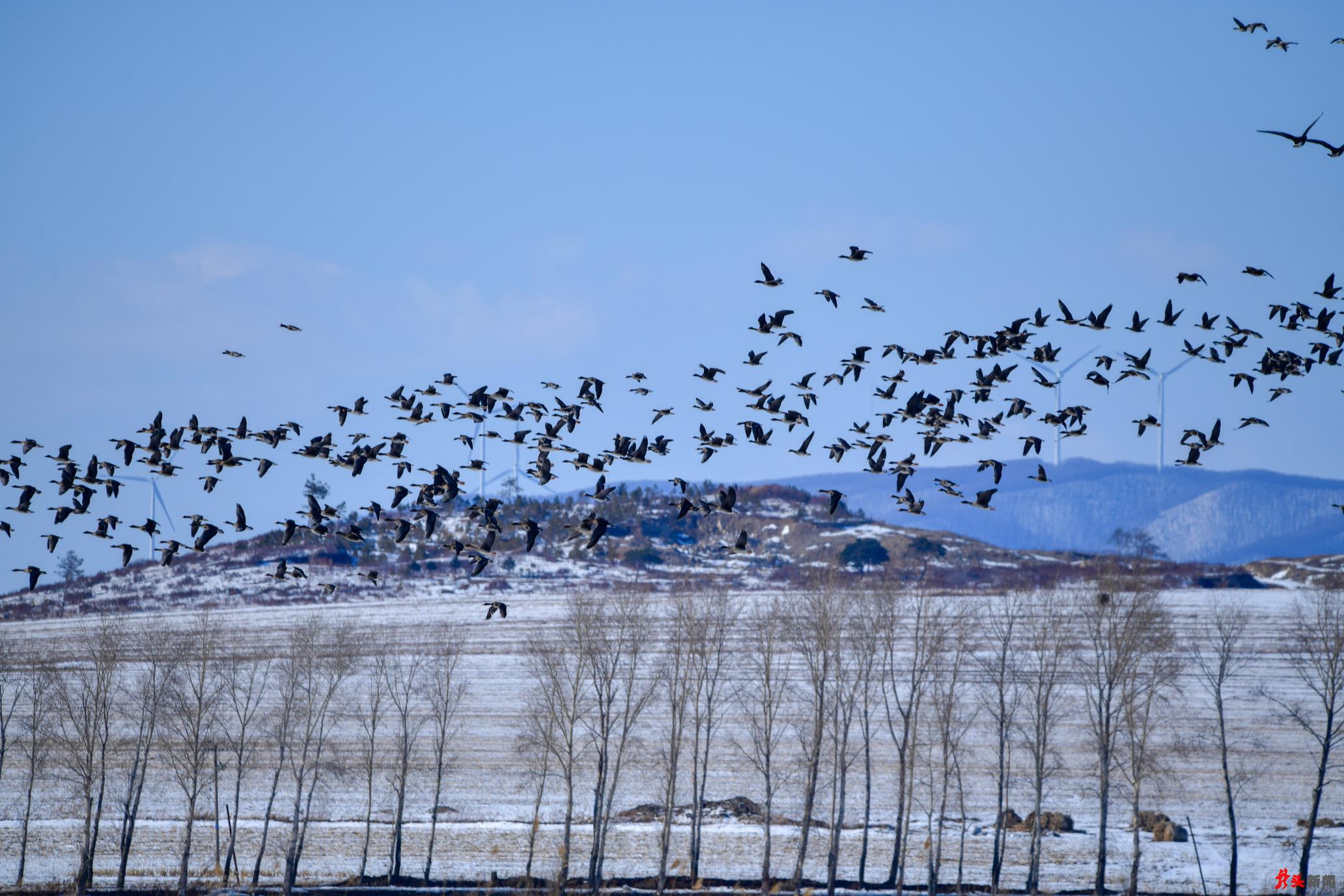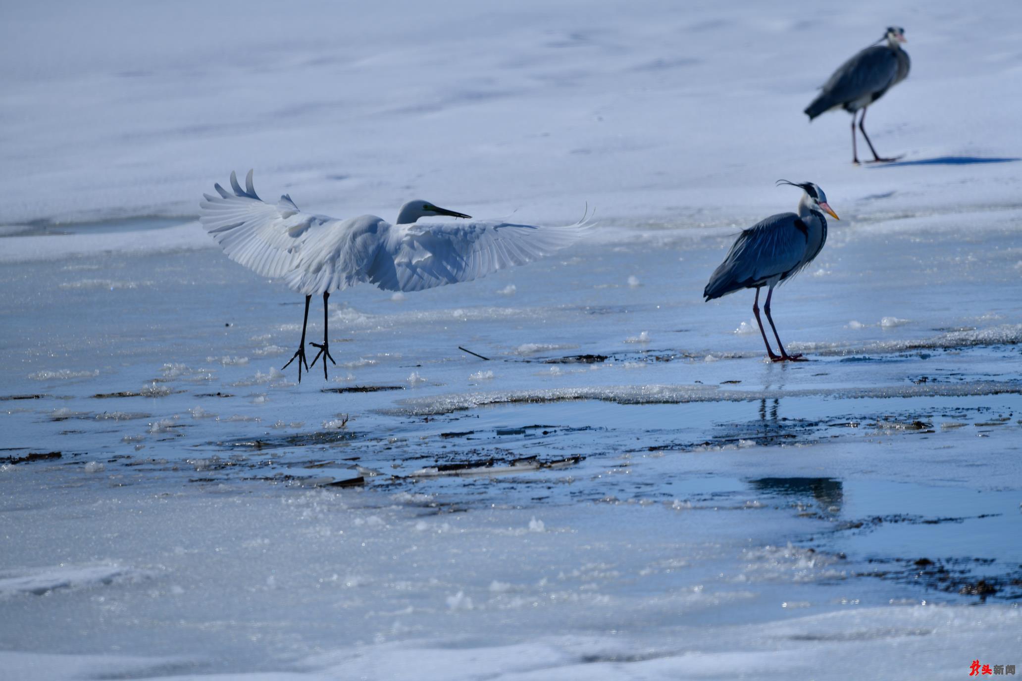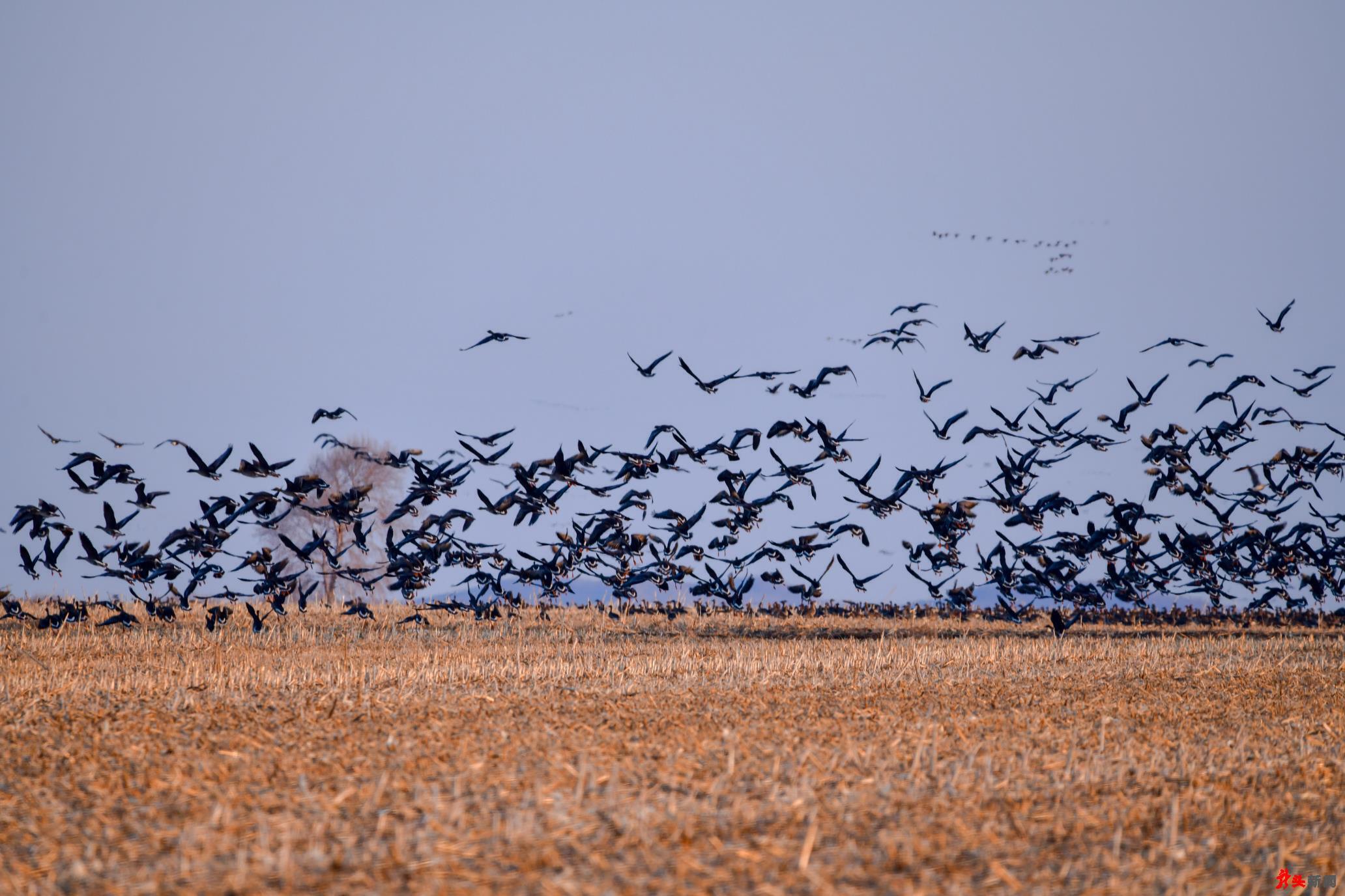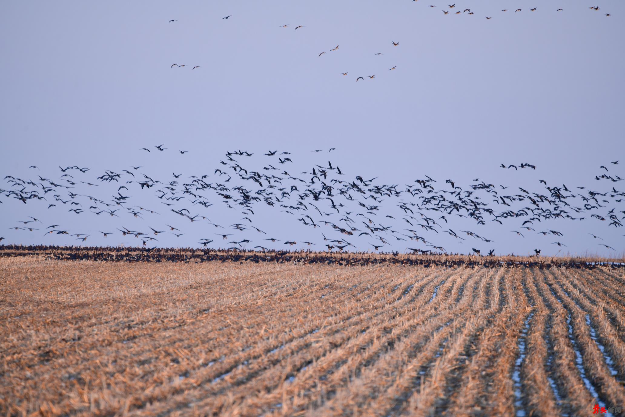 候鳥(niǎo)們有的聚集在剛剛化凍的湖邊,有的聚集在興凱湖閘門流水口附近的活水中,更多的則群集在興凱湖附近的水田地或沼澤地里。