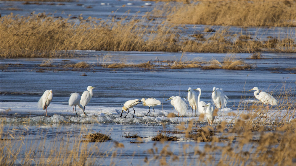寶清縣七星河國家級自然保護區(qū)和東升自然保護區(qū)日前迎來了首批候鳥回歸。數萬只雁類及白琵鷺、丹頂鶴、東方白鸛等候鳥飛臨保護區(qū)停歇休養(yǎng),它們時而起舞歡歌,時而低頭覓食,為保護區(qū)增添了無限生機與活力。