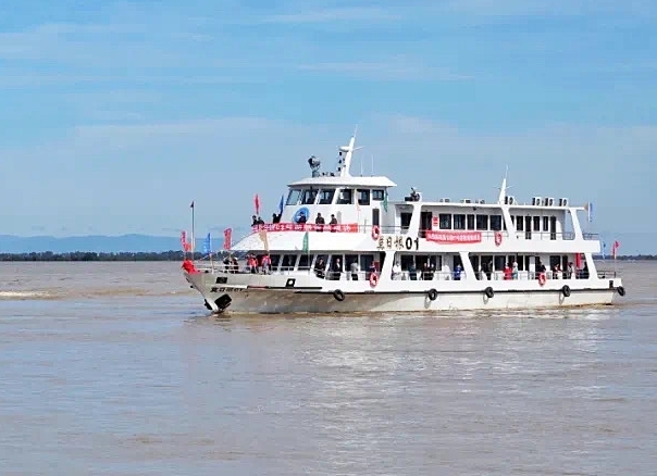 行駛在江面上“莫日根”號(hào)游船