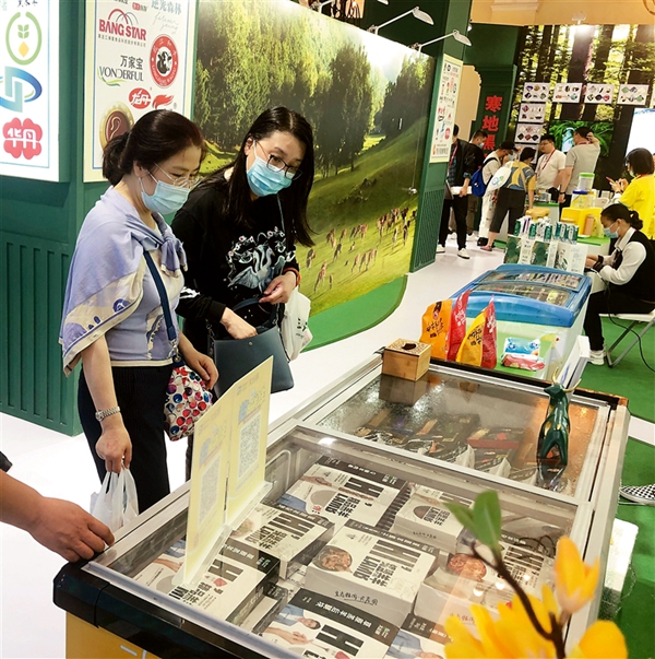 大莊園肉業(yè)集團(tuán)股份有限公司展臺前,40多歲的王女士說起新冠肺炎疫情期間該公司的幾公里免費(fèi)配送服務(wù),“每次收到身穿防護(hù)服的工作人員送來放心的牛羊肉制品,心里都充滿感激之情。”