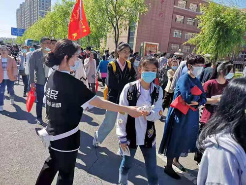 6月7日-8日高考期間,雞西愛爾眼科醫(yī)院及康師傅飲品有限公司雞西辦事處在該市兩大考點外設(shè)置免費(fèi)提供文件袋、祈福手壞、高考助力卡、酒精、扇子、康師傅飲品等助考物料。