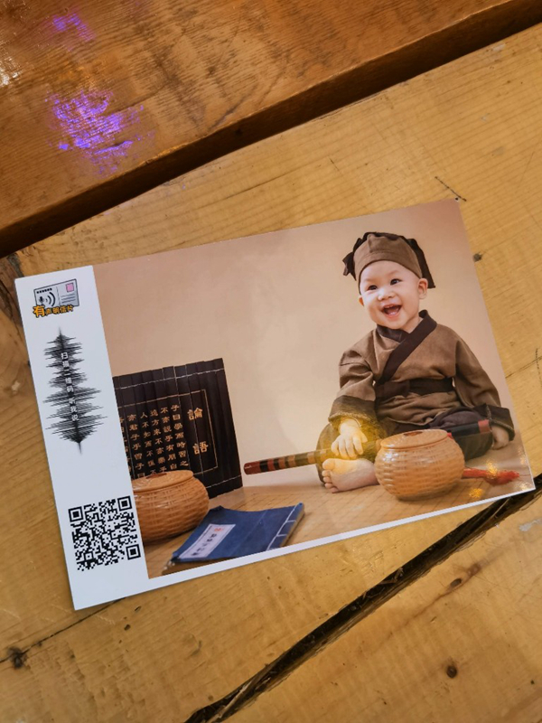 在這里,明信片不僅可以看,還能聽(tīng)!館內(nèi)富有科技范兒的有聲明信片是最受歡迎的。用手機(jī)上傳照片,錄制一個(gè)30秒以內(nèi)的語(yǔ)音,這樣通過(guò)機(jī)器打印出來(lái)的明信片就有了新功能,只要用手機(jī)掃描明信片上的二維碼,就能聽(tīng)到專(zhuān)屬寄語(yǔ)。