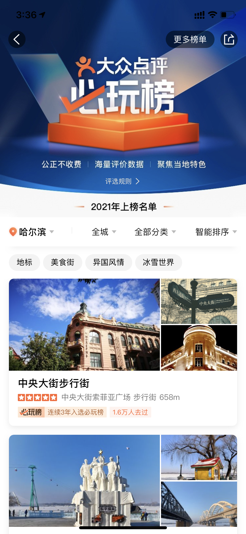 龍頭新聞?dòng)崳?span style="color: rgb(34, 34, 34); text-align: justify; text-indent: 51.84px;">記者孫思琪)日前,大眾點(diǎn)評(píng)發(fā)布2021年“必住榜”“必玩榜”,全國45個(gè)城市共計(jì)986家酒店、939個(gè)玩樂目的地最終上榜。哈爾濱16個(gè)玩樂目的地入選“必玩榜”。