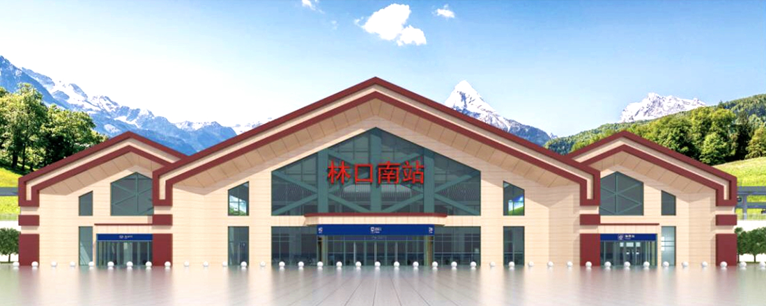 林口南站建筑面積2998.19平方米,可容納800旅客候車(chē)。設(shè)2條正線,2條到發(fā)線,站房外觀設(shè)計(jì)如同“林中木屋”,融入林口縣特有的“山水神秀”文化底蘊(yùn),給人以厚重堅(jiān)實(shí)之感,并將英雄之城的紅色文化融入其中,象征城市精神如山巒屹立。兩側(cè)較小體塊烘托中部門(mén)式造型,窗格構(gòu)件相互交織,如森林霧凇,體現(xiàn)寒冷地區(qū)建筑特質(zhì),具有雪原建筑意向。車(chē)站穩(wěn)重大氣、簡(jiǎn)潔壯麗,通過(guò)現(xiàn)代建筑語(yǔ)言詮釋了站房的人文之靈,彰顯現(xiàn)代交通建筑特征。