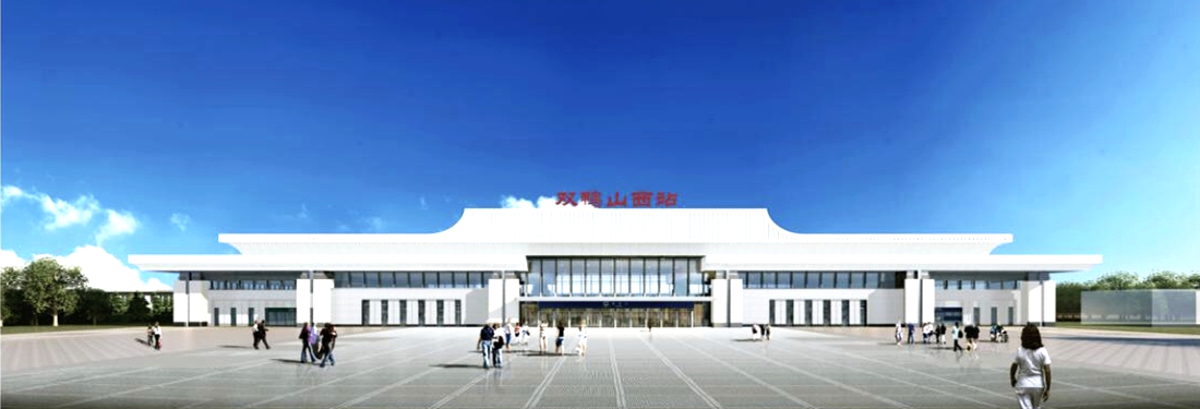 雙鴨山西站建筑面積9997.9平方米,設(shè)2條正線,3條到發(fā)線。以“農(nóng)林盛地,昂揚(yáng)煤城,融匯文脈,合于自然”為設(shè)計(jì)理念。建筑形體通過(guò)極強(qiáng)的橫向?qū)哟危尸F(xiàn)向中心聚集的趨勢(shì),中心高兩側(cè)低類(lèi)似于山脈的建筑天際線與橫向線條結(jié)合給人以綿延不絕的感覺(jué),寓意城市文化及歷史如山如水般源遠(yuǎn)流長(zhǎng)。建筑整體造型著重體現(xiàn)雙鴨山市的煤城特色和豐富的農(nóng)林資源,其煤炭相關(guān)產(chǎn)業(yè)一直作為城市建設(shè)發(fā)展的重要支柱,建筑主立面采用四根厚重有力的支撐柱,以表現(xiàn)這一理念,同時(shí)深入挖掘并體現(xiàn)雙鴨山市特有的文脈及自然特色。