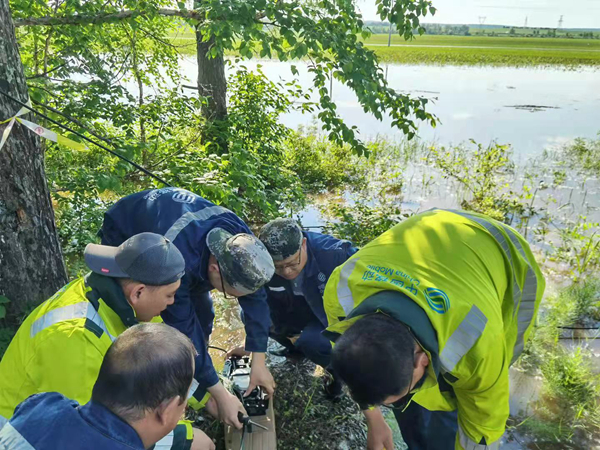 在呼瑪河監(jiān)測(cè)現(xiàn)場(chǎng),大興安嶺水文水資源中心副主任李闖介紹了防汛形勢(shì)嚴(yán)峻的呼瑪河下游水文情況,“呼瑪橋水文站截止到6月22日晚18時(shí),當(dāng)前水位96.20米,仍然超過(guò)警戒水位2.2米,超保證水位1.2米,后續(xù)我們水文部門仍然繼續(xù)密切關(guān)注水雨情,為當(dāng)?shù)胤姥床块T提供更好的技術(shù)支撐。”