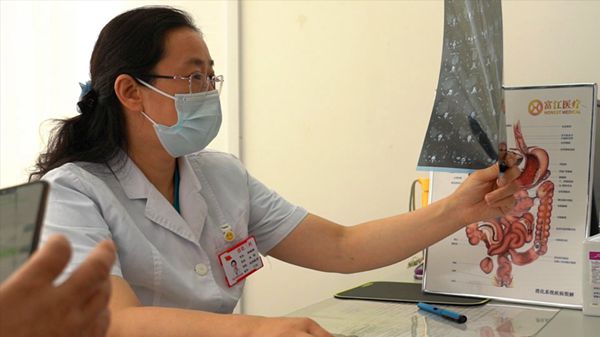 經(jīng)過治療,小李體力有所恢復,無發(fā)熱,腹痛腹瀉好轉(zhuǎn),于是為他安排了一系列的相關(guān)檢查。腸鏡檢查過程中乙狀結(jié)腸狹窄內(nèi)鏡不能通過;CTE見腸管多處狹窄及活動性病灶。根據(jù)檢查結(jié)果,孫曉梅主任決定用鼻胃管管飼營養(yǎng)制劑幫助患者改善營養(yǎng)狀態(tài),并應用生物制劑控制炎癥反應。李銳副主任醫(yī)師開始根據(jù)小李體重精確計算他每日所需熱量,確定管飼營養(yǎng)制劑種類、營養(yǎng)方式及速度,每天查房時,仔細詢問小李病情、查體,完善實驗室檢查,經(jīng)過一周的腸內(nèi)營養(yǎng),小李體重成功增加了1公斤,家屬扶著可以在床邊活動。