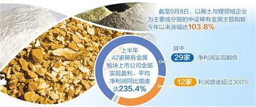 近幾個(gè)月,A股稀有金屬板塊呈現(xiàn)上漲行情。截至9月8日,以稀土與鋰領(lǐng)域企業(yè)為主要成分股的中證稀有金屬主題指數(shù)今年以來(lái)漲幅已達(dá)103.8%。