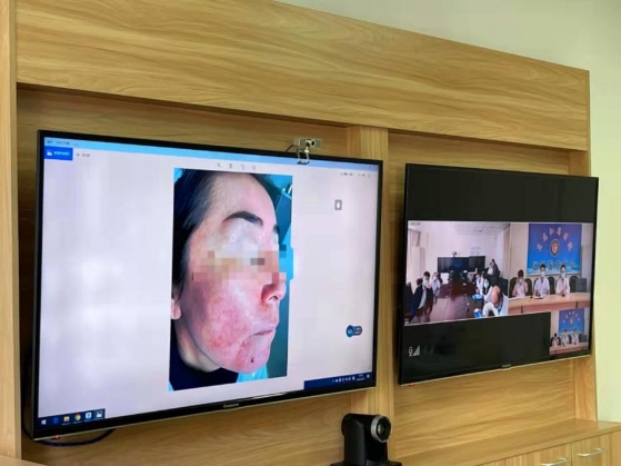 會診當天,在5G網絡高速率、大帶寬、低時延的傳輸下,黑龍江省醫(yī)院遠程醫(yī)療中心會議室大屏幕上,高清地顯示出了遠在4400公里外的新疆阿勒泰地區(qū)人民醫(yī)院會診室畫面,兩地醫(yī)生透過屏幕開展了清晰、流暢地交流。在聽取了新疆阿勒泰地區(qū)人民醫(yī)院醫(yī)生對一例皮膚病患者和一例內分泌科患者病情的介紹后,結合患者各項檢查結果,黑龍江省醫(yī)院皮膚病院皮膚一科魏娟主任和黑龍江省醫(yī)院內分泌科段濱紅主任分別對患者的病情進行了詳細分析和診斷,并給出明確、具體的治療方案和建議。本次遠程會診的成功實施,不僅使黑龍江省有效地對新疆阿勒泰地區(qū)開展醫(yī)療支援,使阿勒泰地區(qū)的病患受益匪淺,并為今后兩地的醫(yī)療交流打開新局面。