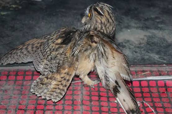 黑龍江經(jīng)濟網(wǎng)訊(韓強 崔紅霞 記者馬朝林)近日,大興安嶺林業(yè)集團公司新林林業(yè)局大烏蘇林場致電林業(yè)局森林資源管理科,稱在林場職工自家庭院中發(fā)現(xiàn)了一只受傷的像貓頭鷹的大鳥。接到電話后,林業(yè)局資源管理科野生動物救助管理人員迅速趕到大烏蘇林場,通過進一步觀察,這只大鳥靜臥在庭院中,其右側(cè)翅膀有明顯傷痕且體質(zhì)較弱,導致無法自由飛翔,初步判斷應(yīng)該是飛行過程中撞擊所致。