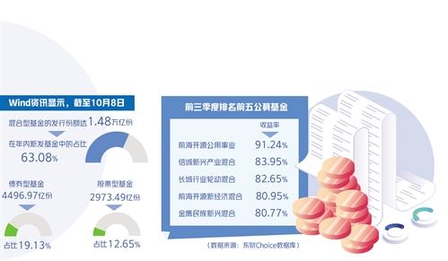 今年前三季度,公募基金整體業(yè)績表現(xiàn)優(yōu)異。金牛理財網(wǎng)統(tǒng)計顯示,今年前三季度,納入統(tǒng)計的主動權益基金(主動股票基金673只、混合型基金5634只)平均收益率為6.48%,200余只公募開放式基金收益率超過30%,其中,53只基金收益率超過50%,22只基金收益率超過60%,14只基金收益率逾70%。