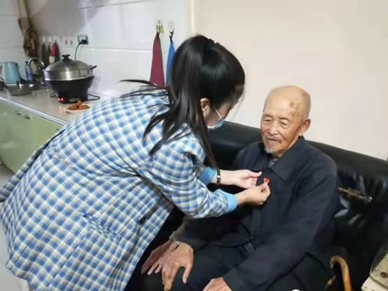 情系老黨員,踐行初心學黨史。社區(qū)黨總支書記來到老黨員單茂功家,老人今年已經92歲,身體一直不好,書記詳細詢問了他最近的身體情況和生活中存在的困難,并叮囑他們保重身體,祝福他們健康長壽。最后,社區(qū)書記為老黨員戴上黨徽,與老黨員共同回顧黨的光輝歷史,傳承紅色精神,老人非常的感動,對社區(qū)的關心表示感謝。