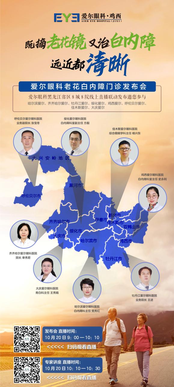10月20日上午9點整,愛爾眼科黑龍江省區(qū)8城8院線上直播聯(lián)動發(fā)布會邀您參與,帶您直擊老花白內(nèi)障手術(shù),為中老年人群的優(yōu)質(zhì)視野和高品質(zhì)生活保駕護航。(愛爾眼科)