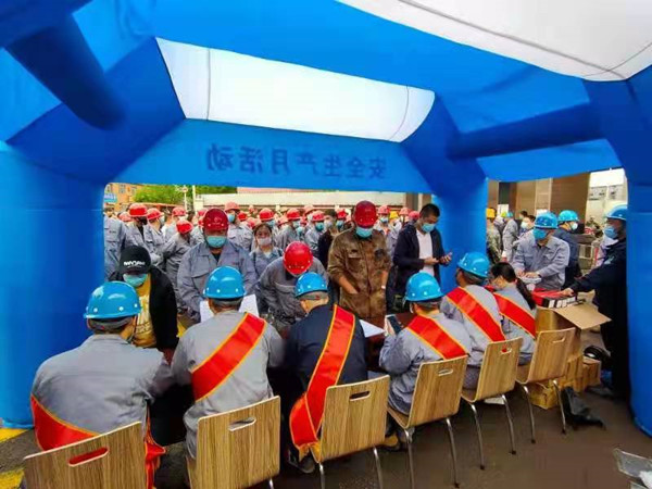 利用“安全生產(chǎn)月”和“安全生產(chǎn)龍江行”活動開展之機(jī),組織安全生產(chǎn)月主題宣傳、學(xué)規(guī)程贏獎品、主題演講比賽、為安全生產(chǎn)獻(xiàn)計(jì)獻(xiàn)策活動、直擊現(xiàn)場應(yīng)急處置知識抽查、安全事故警示片觀看、應(yīng)急救援和CPR救護(hù)比武、300平燒結(jié)作業(yè)區(qū)皮帶著火事故應(yīng)急演練、二級主管公開課、安全知識競賽等11個(gè)安全活動,制作板報(bào)49塊、標(biāo)語84個(gè)、橫幅55條、彩虹門3個(gè)、景觀4處、展板、彩旗、飄旗等宣傳用品,讓濃濃的安全教育氛圍時(shí)刻影響著每名員工。