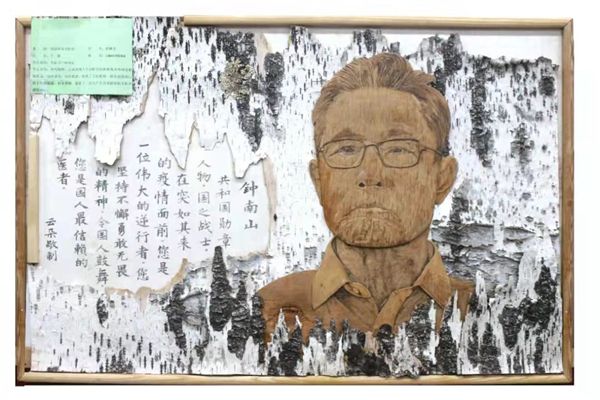 作品“生命衛(wèi)士鐘南山”采用大興安嶺原始森林優(yōu)質(zhì)樺樹皮粘貼而成,畫中鐘南山院士表情凝重,目光堅(jiān)毅,展現(xiàn)了一名共產(chǎn)黨員面對(duì)疫情無私奉獻(xiàn)的決心。作品“蘭閨雅集圖”,情致盎然、祥和靈動(dòng),給人以和諧、溫馨,讓人心生美好。