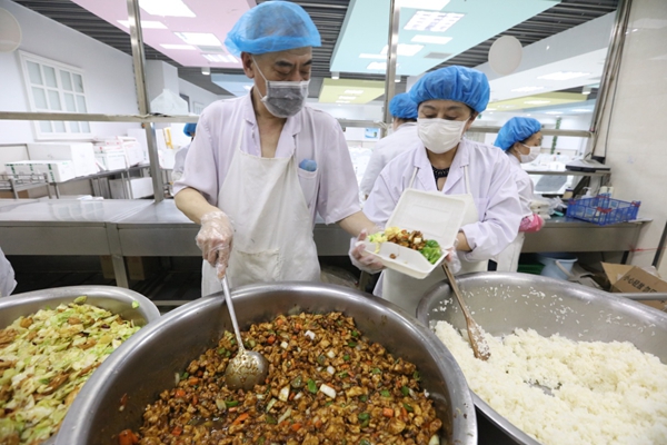 消化內(nèi)科16個月大的患兒浩浩是過敏體質(zhì),因發(fā)熱、腹瀉、進食后嘔吐住院治療,這個孩子既往過敏原檢查對大米、西紅柿、雞蛋等多種食物過敏,所以食堂針對這個孩子飲食單獨配餐,主食以小麥類饅頭等為主,蔬菜以在家經(jīng)常食用的菜類制作,保證患兒的營養(yǎng)進食。據(jù)了解,哈爾濱醫(yī)科大學(xué)附屬哈爾濱兒童醫(yī)院全力保障300多名住院患兒以及陪護家屬的一日三餐飲食。每天患兒家長通過住院患者訂餐系統(tǒng)平臺網(wǎng)上自助訂餐,食堂配餐送到病房。鞠樹斌介紹,食堂每天負責醫(yī)院職工和患者及陪護家屬800多人次的一日三餐,在崗的25名工作人員,每天從3時開始準備早餐,8時制作午餐,14時又開始做晚餐。工作雖然忙碌,但卻覺得自己的努力能讓患者們在住院期間吃得安心、舒心,又覺得自己價值感滿滿。
