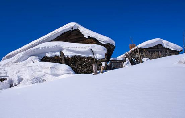 這里的降雪期長達(dá)半年,每年累積降雪厚度達(dá)2米,獨(dú)特的小氣候造就了隨物賦形的雪檐,千姿百態(tài)的雪簾,變化多端的雪蘑菇,只有到了這里,才能領(lǐng)略到山舞銀蛇,原馳蠟象,欲與天公試比高的冰雪奇觀。積雪在風(fēng)力的作用下其狀好似奔馬、臥兔、神龜、巨蘑……千姿百態(tài),仿佛是天上的朵朵白云飄落。 雪村人在自家掛起大紅燈籠,潔白如玉的白雪在大紅燈籠的映襯下,溫柔喜慶,幻化無窮。