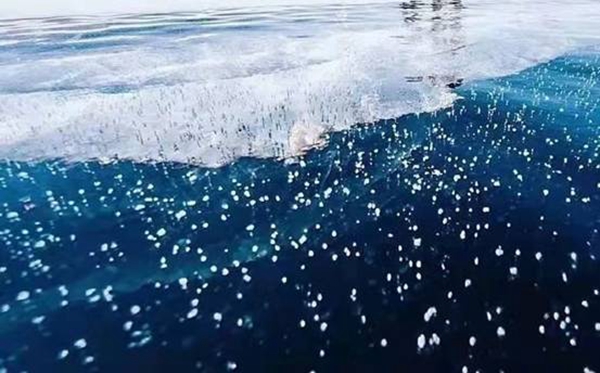 “冰泡”是由湖底植物釋放出的沼氣(甲烷)在上升過程中,因極寒氣溫導(dǎo)致冰封速度過快,被“鎖”在冰層之中而形成。目前,全世界僅有3個(gè)著名的冰泡湖,北極漠河冰泡湖是中國最北唯一的“冰泡奇觀”。觀音山“冰泡”晶瑩剔透、造型奇特、惟妙惟肖,有的形似“飛碟”一飛沖天,有的形似“珊瑚”美輪美奐,有的形似“觀音”端坐蓮臺(tái)。形態(tài)各異的“冰泡”形成一幅幅精美的冰雪藝術(shù)畫卷,成為漠河冬季最火爆的網(wǎng)紅打卡地。