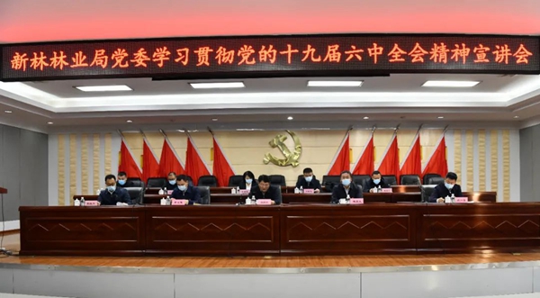 組織部署先行,推動全局貫徹“一盤棋”。新林林業(yè)局黨委第一時間召開部署會議,研究貫徹落實措施,召開理論學習中心組(擴大)會議,學習《中國共產(chǎn)黨第十九屆中央委員會第六次全體會議公報》精神,并集體收看黨的十九屆六中全會新聞發(fā)布會。印發(fā)《新林林業(yè)局黨的十九屆六中全會精神學習宣傳工作實施方案》《新林林業(yè)局學習貫徹黨的十九屆六中全會精神宣教工作方案》等文件,要求各單位科學組織,通過線上與線下、自學與集中學相結合等多種方式,開展學習研討,不斷提高政治站位;各基層單位積極行動,精心安排部署,結合單位實際,立足“學懂、弄通、做實”的要求,通過“讀書班”、“三會一課”、“主題黨日”、集中研討等形式,切實把學習成效轉化為工作動力,推動各項工作部署落地見效。截至目前,全局開展集中學習