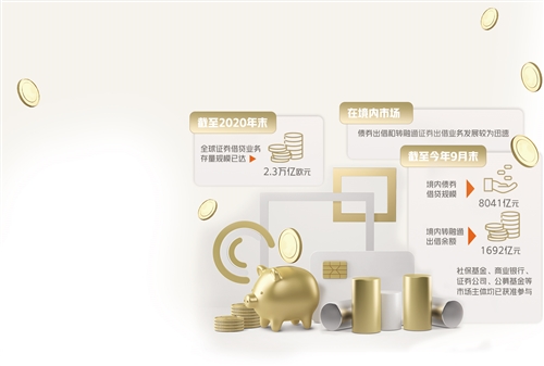 證券出借業(yè)務(wù)俗稱“融券”,是境內(nèi)外資本市場(chǎng)提高二級(jí)市場(chǎng)流動(dòng)性的常見(jiàn)交易制度,發(fā)展較為成熟。截至2020年末,全球證券借貸業(yè)務(wù)存量規(guī)模已達(dá)2.3萬(wàn)億歐元。在境內(nèi)市場(chǎng),債券出借和轉(zhuǎn)融通證券出借業(yè)務(wù)發(fā)展較為迅速,截至今年9月末,境內(nèi)債券借貸規(guī)模8041億元,境內(nèi)轉(zhuǎn)融通出借余額1692億元,社?;稹⑸虡I(yè)銀行、證券公司、公募基金等市場(chǎng)主體均已獲準(zhǔn)參與。