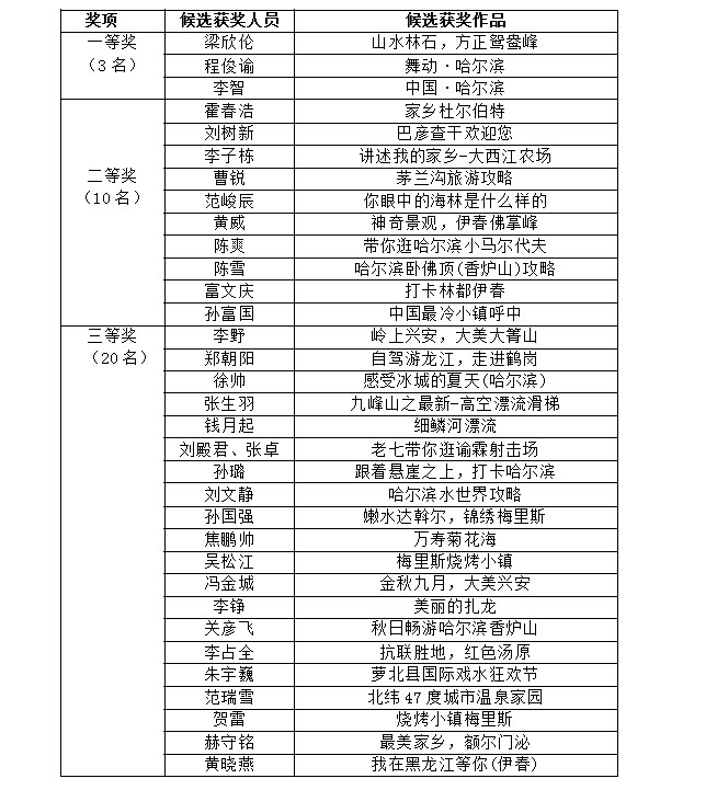 黑龍江文化旅游短視頻新媒體營銷創(chuàng)作大賽獲獎(jiǎng)名單