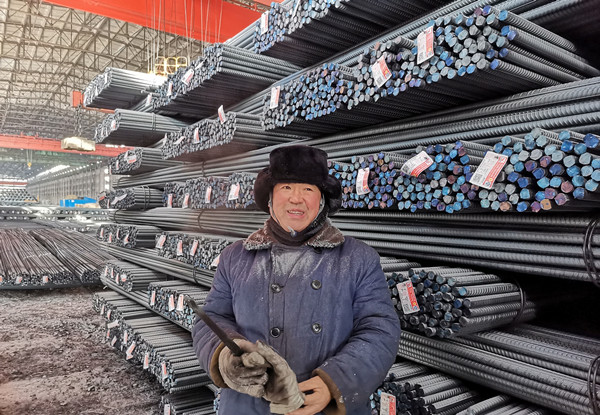 在鋼材成口庫,一位身穿工裝大棉襖、頭戴棉帽,捂得嚴嚴實實,臉色微紅的,帽沿掛滿了霜的工人十分引人注目。他叫朱世軍,是軋鋼廠發(fā)運作業(yè)區(qū)丙班的一名普通司索操作員,初一正是白班,主要負責(zé)鋼材裝運掛鉤和為火車車皮用鐵線鎖車門工作,一但發(fā)運繁忙時,無論白班還是夜班都得在室外作業(yè)裝車,企業(yè)鋼材就靠他們配合裝上火車發(fā)往市場的。“今天得發(fā)運鋼材110車左右,每天上班,在成品庫得上上下下,得走好幾里地,今天就挺冷啊,最低零下26度,冷風(fēng)吹的嘴都木了,既使戴著棉手套,手也都凍僵了,但是,每天一想到通過我的努力,把建龍西鋼鋼材發(fā)往全國各地,為建龍西鋼美好企業(yè)建設(shè)做貢獻,我雖然冷點但心里熱乎乎的,真心感到驕傲和自豪。