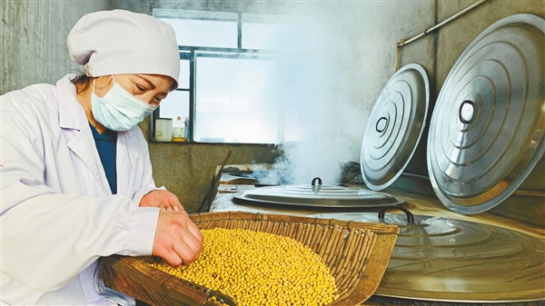 漫長(zhǎng)的歲月,手藝人不斷積累經(jīng)驗(yàn),對(duì)豆子在發(fā)酵過(guò)程中不斷變化的溫度、色澤、香氣等有了直覺(jué)判斷,才讓胡曉華的手工大醬保存了讓人認(rèn)可的老味道。經(jīng)常有人慕名找她咨詢,“我家大醬為啥不發(fā)酵?”“大醬酸了咋辦?”……她都一一耐心地解答。
