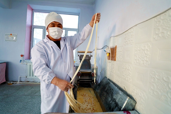 阿木爾林業(yè)局職工王官安已加工出寬的“依林河手搟面”(王力 攝)
