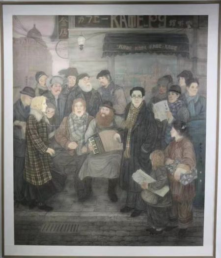 哈爾濱理工大學(xué)蔣博老師積極響應(yīng)黑龍江省“重大歷史題材”美術(shù)創(chuàng)作工程,與愛人吳天文共同努力,攜手創(chuàng)作出了《瞿秋白·心中流淌的國(guó)際歌》這件作品。經(jīng)過初期大量的搜集歷史資料,再到草圖的繪制,最后定稿繪制完成,前后歷時(shí)近三年。這幅作品的靈感來源于1921年瞿秋白以記者的身份訪俄,在哈爾濱一個(gè)多月的滯留期間,感受到了共產(chǎn)主義的氣息,第一次聽到了由俄國(guó)人傳唱的《國(guó)際歌》。凝重的節(jié)奏與激昂的旋律催人覺醒,使人奮進(jìn)。隨后他決定將這首歌翻譯成中文,通過簡(jiǎn)化之后的巧妙翻譯以更加通俗易懂的口吻使民眾接受而廣為傳唱。