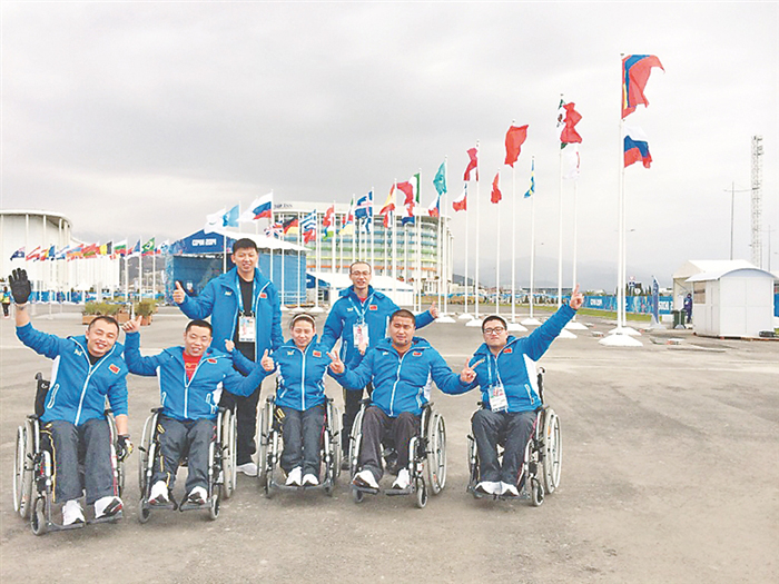 2014年索契冬殘奧會(huì)中國(guó)輪椅冰壺隊(duì)合影。