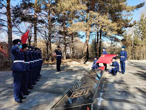 在革命烈士紀(jì)念碑前,全體指戰(zhàn)員整齊列隊,莊嚴(yán)肅穆,向長眠在這里的革命烈士致以崇高的敬意,深切緬懷那些為了新中國拋頭顱、灑熱血的先烈們。緊接著,指戰(zhàn)員面向紀(jì)念碑,高舉右手,重溫入黨誓詞。