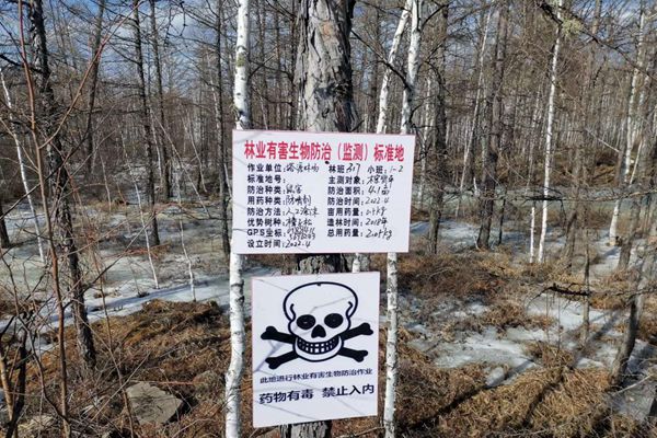 新林林業(yè)局塔源林場(chǎng)營(yíng)林病防人員在鼠害多發(fā)區(qū)設(shè)立警示牌,用于提醒居民(劉松 攝)