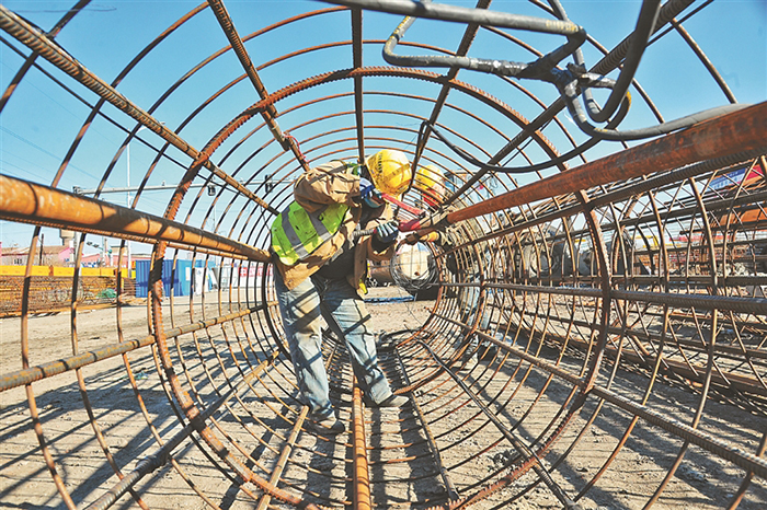 焊花飛濺、工程車來回穿梭……走進(jìn)省級(jí)重點(diǎn)項(xiàng)目——北門街高架橋工程建設(shè)現(xiàn)場(chǎng),施工人員有的綁鋼筋,有的輔助機(jī)器打樁,鉆頭飛轉(zhuǎn),施工熱火朝天。