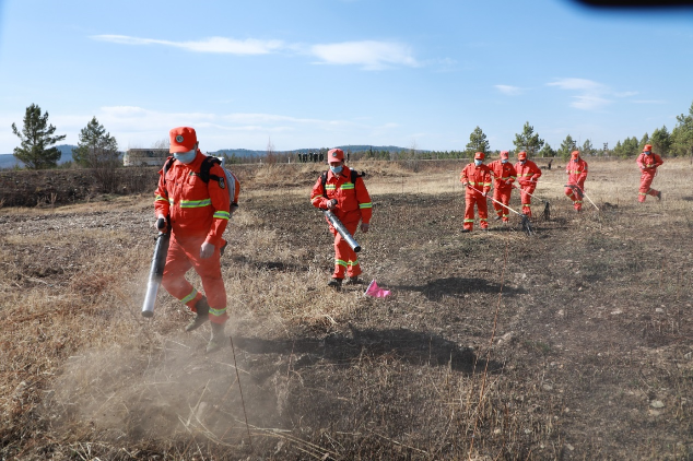 阿木爾林業(yè)局紅旗林場(chǎng)舉辦撲火技能競(jìng)賽活動(dòng),防火專業(yè)隊(duì)隊(duì)員模擬實(shí)戰(zhàn)演練“一點(diǎn)兩面、分兵合圍”戰(zhàn)術(shù)(王力 攝)