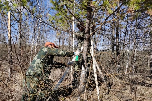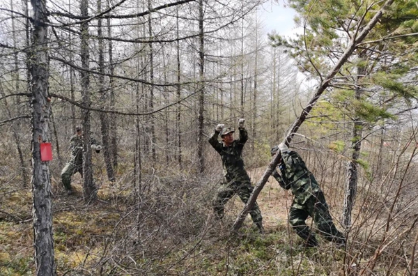 呼中林業(yè)局雄關林場積極開展倒伏樹木扶正栽植工作