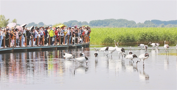 15日,第二個“鄉(xiāng)約扎龍·情滿鶴城”——“扎龍齊齊哈爾市民日”全面啟動。當(dāng)日天藍(lán)水碧,徐徐微風(fēng)拂過,眾多游客來到國際重要濕地之一的扎龍濕地感受濕地風(fēng)光的壯闊之美,欣賞鶴舞云翔的自然之美。馬麗娟 宋燕軍 黑龍江日報全媒體記者 姚建平攝