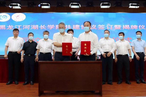 儀式上,省水利廳黨組書(shū)記、廳長(zhǎng)、省河湖長(zhǎng)制辦公室常務(wù)副主任侯百君和黑龍江大學(xué)校長(zhǎng)付宏剛簽訂了共建協(xié)議,與黑龍江大學(xué)黨委書(shū)記王永清共同為黑龍江河湖長(zhǎng)學(xué)院揭牌。
