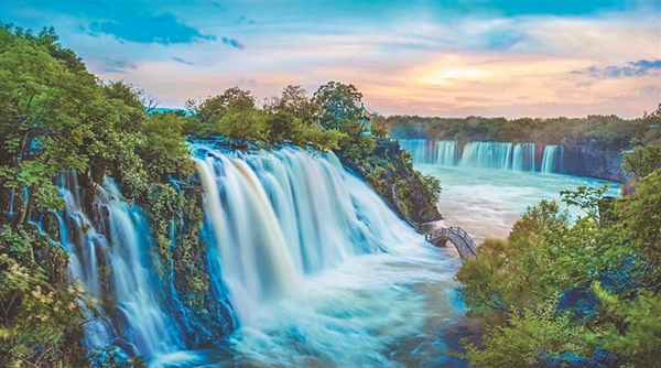 盛夏時節(jié)的鏡泊湖,云卷云舒,青山如黛,奔流不息的吊水樓瀑布猶如蛟龍般翻騰滾躍。來自哈爾濱的喬茜一家,正站在觀景臺欣賞“瀑布飛人”帶來的精彩刺激的跳水表演。這幾天,喬茜帶著家人泛舟湖上欣賞兩岸秀美宜人的風(fēng)景,探尋靜謐森林享受寧靜的夏日時光,在活力滿滿的水世界體驗一觸即發(fā)的快樂。隨著氣溫的逐漸升高,越來越多的游客和喬茜一樣,選擇走進牡丹江,體驗難得的清涼與愜意。