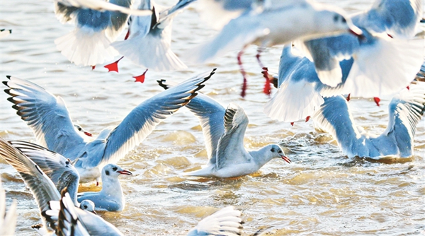 近年來,隨著環(huán)境保護(hù)力度的加大,松花江生態(tài)持續(xù)向好,水豐魚多,給紅嘴鷗等候鳥提供了豐富的食物。每年,都有超過萬只的紅嘴鷗春秋兩季在松花江這處“驛站”歇腳。 黑龍江日報(bào)記者 張澍攝