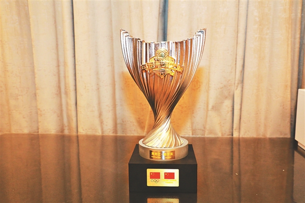 “奧運冠軍之城”紀念獎杯。劉玉璽攝