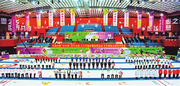 圖為2022中國(guó)冰壺聯(lián)賽(伊春站)開幕式現(xiàn)場(chǎng)。(胡錫韋/攝)