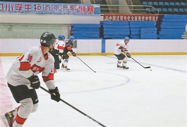 快速走位、高速滑行、靈活運(yùn)球、有力射門(mén)……佳木斯市滑冰館內(nèi),冰球隊(duì)員們正在緊張集訓(xùn),備戰(zhàn)省運(yùn)會(huì)和全國(guó)錦標(biāo)賽。