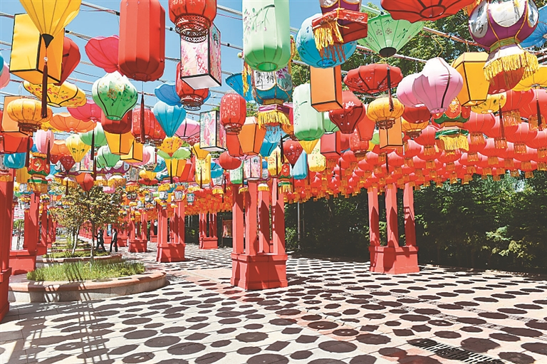 本次活動為期5天,還設有眾多特色主題展示:上千把倒懸油紙傘、1800盞紅燈籠、700余個彩燈、12盞宮燈、7座仿古涼亭……為大家?guī)硪粓鲆曈X盛宴。
