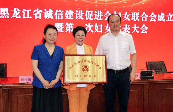 省直機(jī)關(guān)工委副書記、全省性社會(huì)組織黨委書記徐凱,省婦女聯(lián)合會(huì)黨組成員、省政府婦兒工委辦主任姜秀麗為黑龍江省誠信建設(shè)促進(jìn)會(huì)婦女聯(lián)合會(huì)頒發(fā)牌匾。