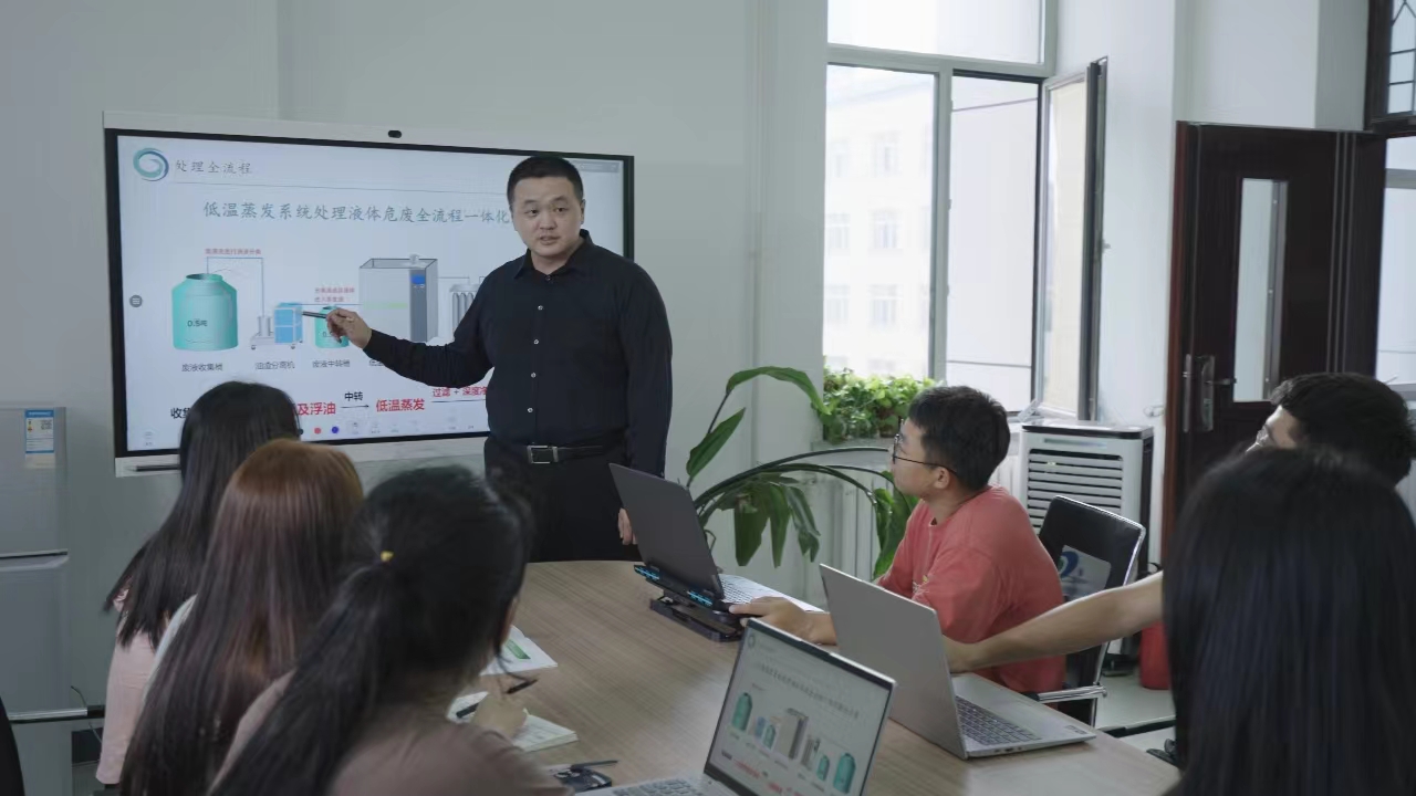 黑龍江職業(yè)學院《龍之禹30℃低溫蒸發(fā)——企業(yè)液體危險廢棄物源頭減量化的省錢專家》項目負責人郭振航帶領項目組成員研討