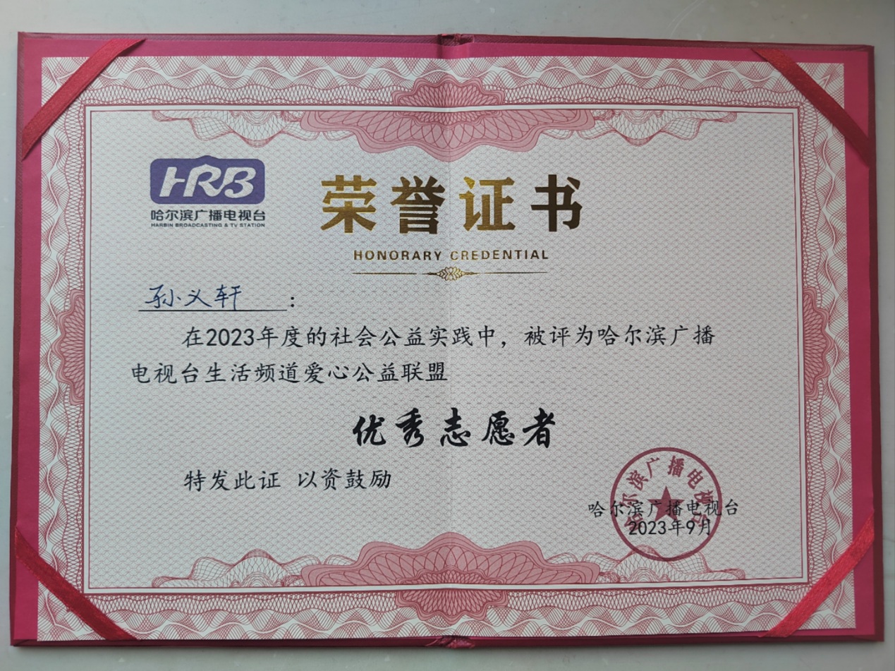 上學后的孫義軒同學更是把助人為樂當作自己日常的志愿行動。他一邊認真學習文化課程,一邊通過積極參加志愿活動提升自己。
