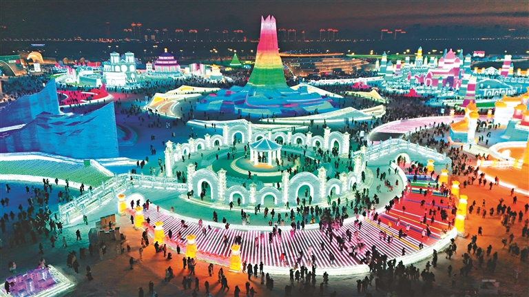 “震撼,刺激!”采訪過程中,不少游客這樣總結(jié)冰雪大世界之行。因?yàn)槊谰岸械秸鸷?,乘?21米超長大滑梯體驗(yàn)到風(fēng)馳電掣的刺激……這個(gè)冰雪季,以“龍騰冰雪 逐夢亞冬”為主題的第二十五屆哈爾濱冰雪大世界為八方游客準(zhǔn)備了一場集沉浸體驗(yàn)、旅游觀光、賞冰樂雪為一體的冰雪盛宴,這必定是一段令人難忘的冰雪旅程。
