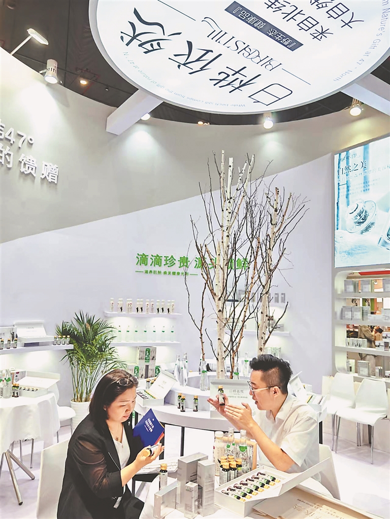 “產(chǎn)品所用的白樺汁原料源自鐵力市,這里處在北緯47°小興安嶺的黑土地上。”黑龍江雨曉科技有限公司總經(jīng)理馬光西介紹,公司充分利用龍江“九珍十八品”資源,由雨曉集團與清華大學(xué)深圳科研團隊合作,運用先進技術(shù)開發(fā)提煉出白樺汁精華,為消費者不斷提供囗感獨特的綠色飲品、化妝品?,F(xiàn)在企業(yè)庫存清空,鐵力工廠正加班加點生產(chǎn)。本次展會的火爆出圈,讓企業(yè)對白樺汁系列產(chǎn)品走向世界市場更加充滿信心。